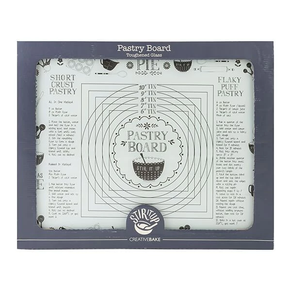 The Stir it up Creative Bake pastry board is beautifully crafted in glass with hand-drawn illustrations.