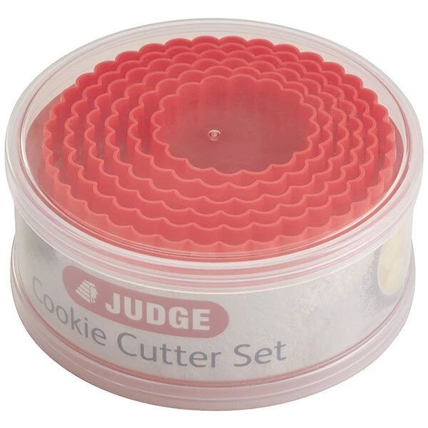This brightly coloured cookie cutter set comes in six sizes and feature a round shape.