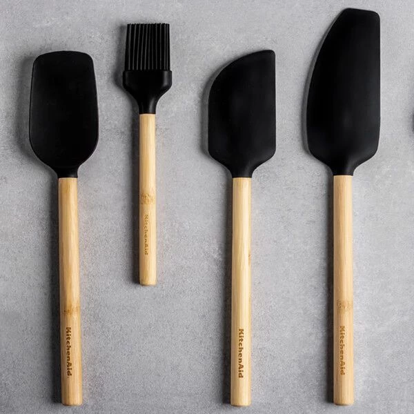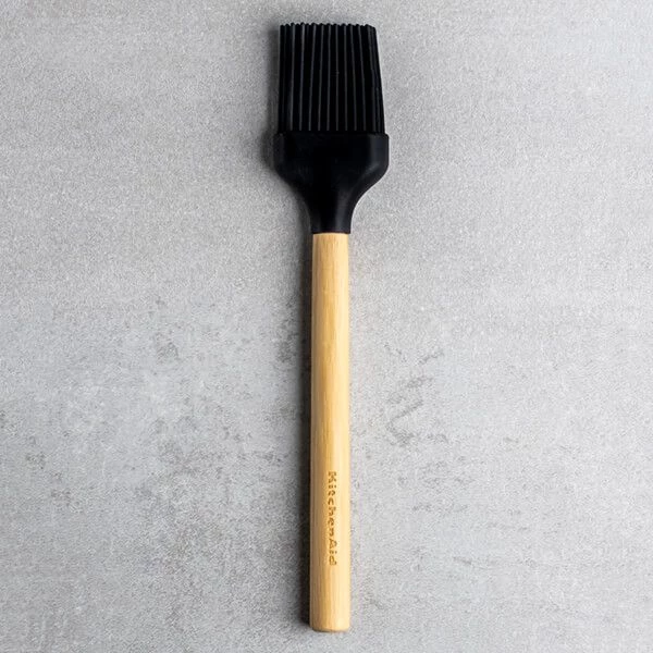 Crafted from environmentally friendly bamboo, this KitchenAid Bamboo Pastry Brush is perfect for applying glazes and washes to pastries, dough and biscuits. The flexible silicone head has long bristles to coat even hard to reach areas. The silicone head is safe to use with all types of cookware and bakeware, including ceramic, cast iron and non-stick and is also heat resistant up to 260°C.