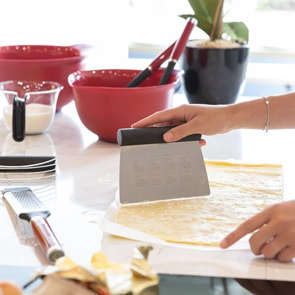 A truly versatile addition for any kitchen, the KitchenAid Stainless Steel All-Purpose Dough Cutter and Scraper in Black can be used to cut and measure dough, chop vegetable, crush garlic, scrape surfaces clean and even transfer ingredients from a cutting board to a pan.