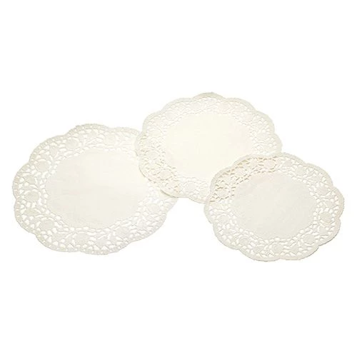 Pack of twenty-four decorative paper doilies for cake, sandwich and buffet presentation. The doilies can also be used as an icing sugar stencil for cake decoration. Contains eight of each size doily.