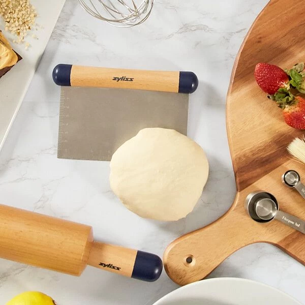 Prepare, measure and cut dough with the Zyliss bench scraper. This versatile kitchen utensil has many uses – from portioning and scraping dough to lifting bakes from a baking sheet. You can even use it to chop vegetables and transfer them from the chopping board to the pan.